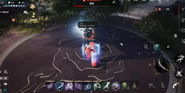 在大家滑翔到试炼台的一瞬间,就会吸引到饿狼的仇恨,这时候不要着急上前,因为他有两招起手式需要先躲避,首先他会向着玩家的方向发射几个直直的冰霜剑气,这个只要保持横向移动就可以躲开,第二个起手技能是发射几次会追踪的剑气,要尽量离他远一些并且是绕圈跑,因为第二个技能的伤害是范围的,即使躲开了炸点,如果没有远离范围也很容易吃到伤害。
