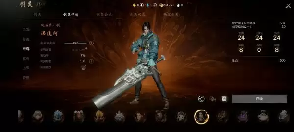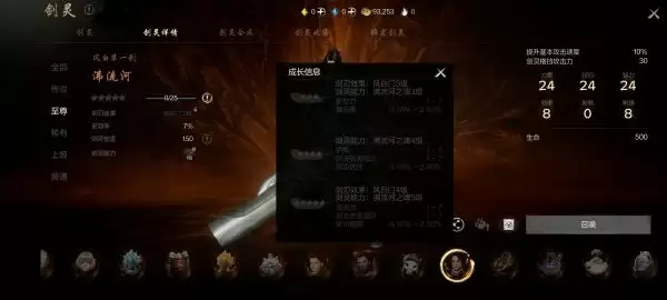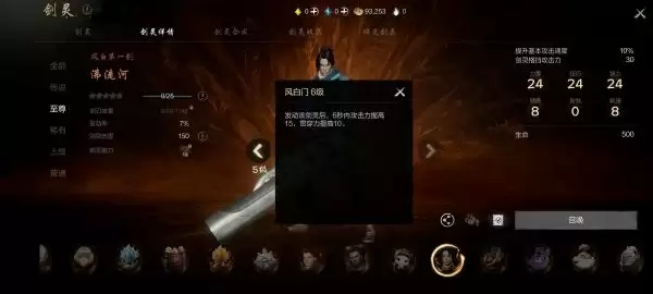 风白第一剑是属于至尊品质,在属性方面仅次于传说,对于大多数玩家来说,这一品质的剑灵都是完全值得培养的,即使不作为主剑灵,也一定会成为附属剑灵帮助战斗。风白第一剑的剑灵效果是提升力量、技巧和智力均24点,还有8点健康和8点敏捷,以及10%基本攻击速度提升和30点剑灵格挡攻击力提升,还有500点生命值。
