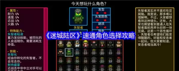 《迷城陆区》速通角色选择攻略