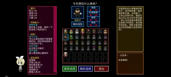 接着,我们排除藏匿者,因为他自带一个“快速逃生传送器”这个东西对于萌新挺有用滴!但是,在速通里面,这个东西只会影响我们的速度!所以应当排除!