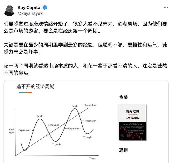 知名加密博主 @keyahayek 如此评价周期的力量:“花一两个周期便能看透市场本质的人,和用一辈子都看不清市场的人,注定拥有截然不同的命运。”