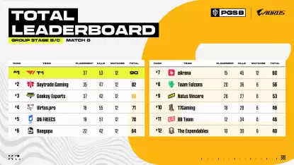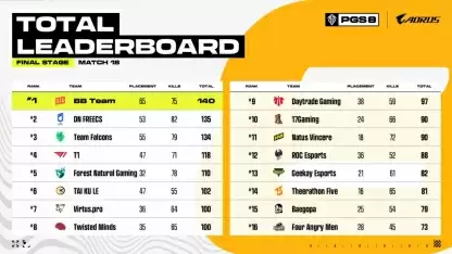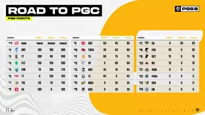 根据此前的规则,PGS7&8均采用了经典双阶段赛制,24支战队将分为三组(A/B/C组)进行为期三天的角逐,每天6场比赛,总积分前16名晋级决赛,末位8队淘汰。晋级的16强经过3天18场的鏖战后,积分榜榜首战队将加冕冠军。接下来,我们就一起来看看本次PGS8的精彩回顾吧。
