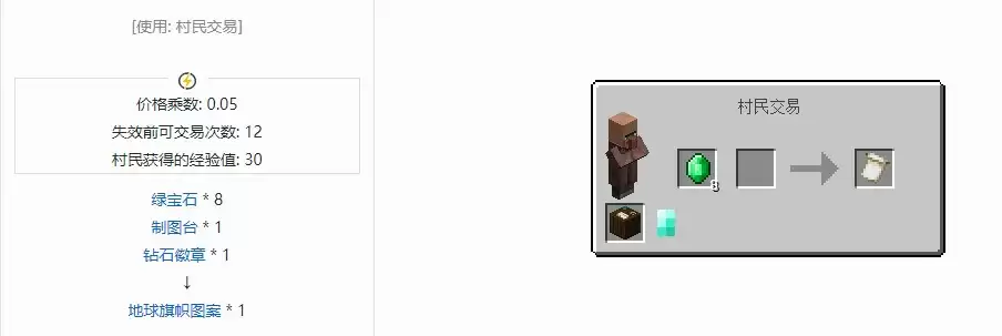 由大师等级的制图师村民以8个绿宝石的价格出售1个