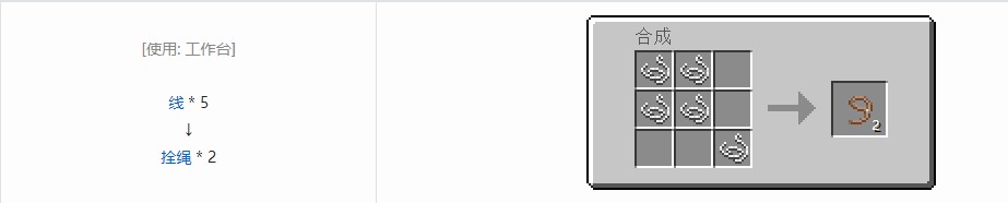 我的世界游戏里面的拴绳制作方法:5个线可以获得2个拴绳,允许玩家牵引动物,也可以先拴住动物再系到木栅栏上来防止动物乱跑,拴绳的最大有效长度为10米,超过拴绳就会断裂。