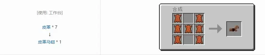不同于其他几种马铠的获得方式,皮革马铠只能由皮革合成。