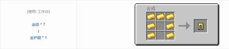 我的世界金护腿怎么合成