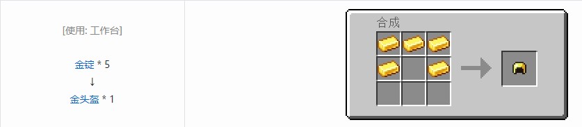 我的世界游戏里面的金头盔合成方法:5个金锭可以获得1个金头盔,穿上它,猪灵将视你为友好生物,如果你攻击猪灵,或者在猪灵旁边挖金块开/挖箱子,不管有没有穿着金盔甲,猪灵都会攻击你。