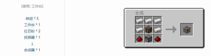 合成器是一种在接收到红石信号时自动合成并丢出产物的方块。