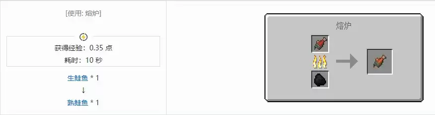 在熔炉烧制生鲑鱼以获得熟鲑鱼。