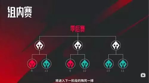 组内赛,本阶段采用竞技征召模式(常规BP),甲乙两组分别进行单循环BO3,并确定7只季后赛队伍和4只淘汰队伍,而剩余的6只队伍,将决出最后3个季后赛名额。