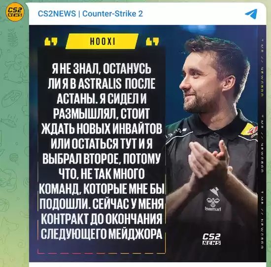 Astralis选手HooXi表示,他将至少留在战队直至StarLadder 布达佩斯Major结束。