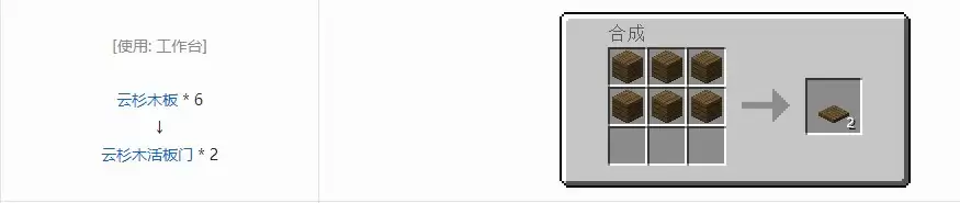 我的世界游戏里面的云杉木活板门制作方法:需要材料6个云杉木板可以获得2个云杉木活板门,活板门能够在玩家或生物在活板门里面的情况下被开启或关闭。