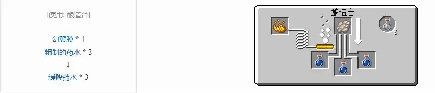 我的世界游戏里面的缓降药水制作方法:需要材料1个幻翼膜+3个粗制的药水可以获得3个缓降药水,一个效果的最高等级为255级,但只能通过命令和修改器等获得。