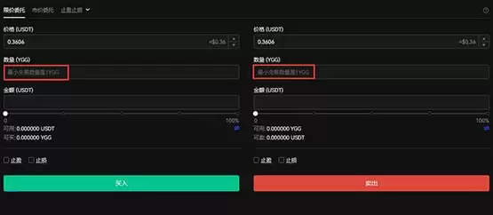 6. 填写购买数量,点击【买入】即可。如果想卖出,填写卖出数量,点击【卖出】即可。(在[欧易](https://okx.4k6k.com/oe.html)[OKX](https://okx.4k6k.com/oe.html)交易所,YGG 币的最小交易数量是 1 YGG。)