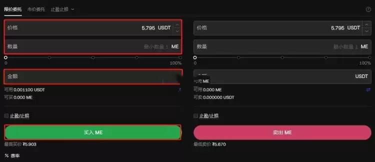 12、输入买入ME数量,点击买入ME就可以了。