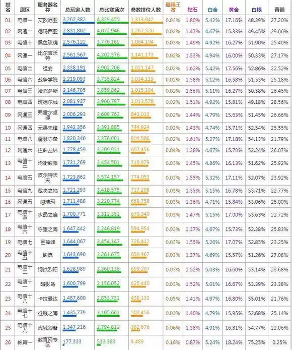 lol各段位人数比例