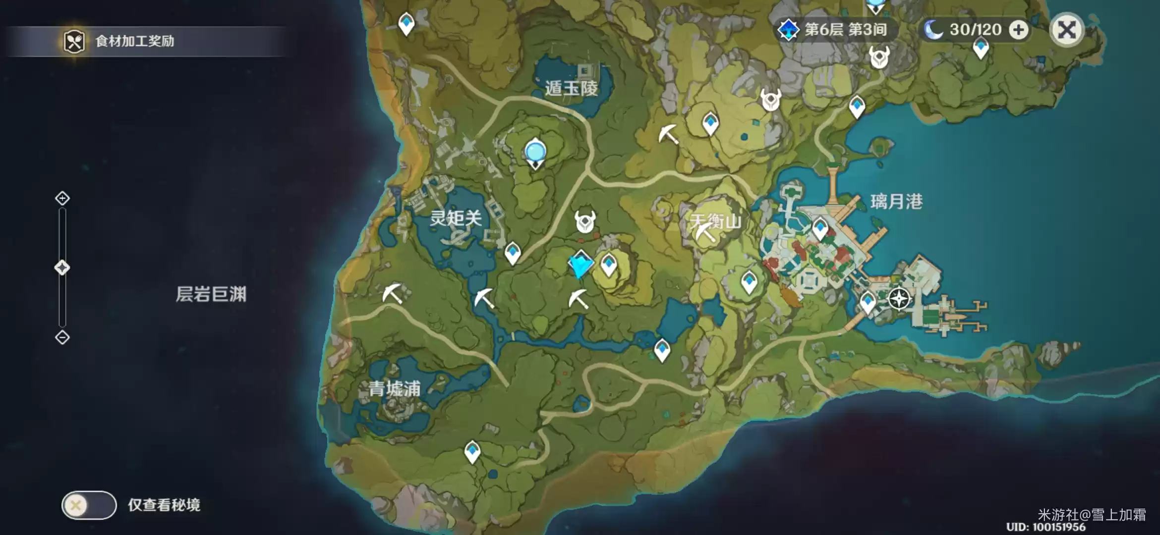 璃月港后面有个秘境,进去有五个岩之柱的解谜机关。
