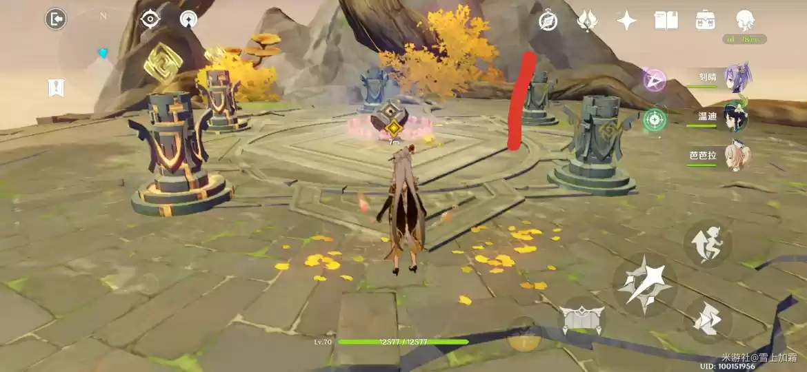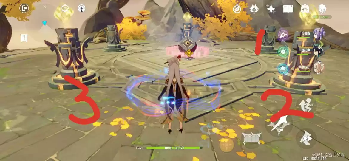 按照顺序依次用岩系点亮岩之柱。(开始不要乱动柱子,要按照顺序点亮)