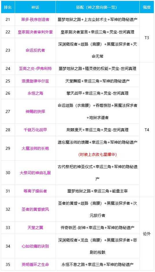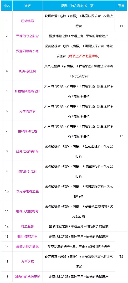 结语:实战环境下,很难做到像修练场一样的完美打桩,并且现在副本都可以吃CD药,冷却大多数情况都是溢出的,多数时候技能都空转了,因此CD装备的价值并不高,强度自然也会低一些。本篇没有T0级的推荐,因为前几的神话搭配或多或少都有一点点副作用,比如光剑搭配中噩梦地狱之路的搭配会持续掉血,水果搭配的吞噬愤怒在爆发性的副本中,伤害会大打折扣;巨剑搭配则是只有爆发没有续航能力,相比较光剑是比较明显的劣势。