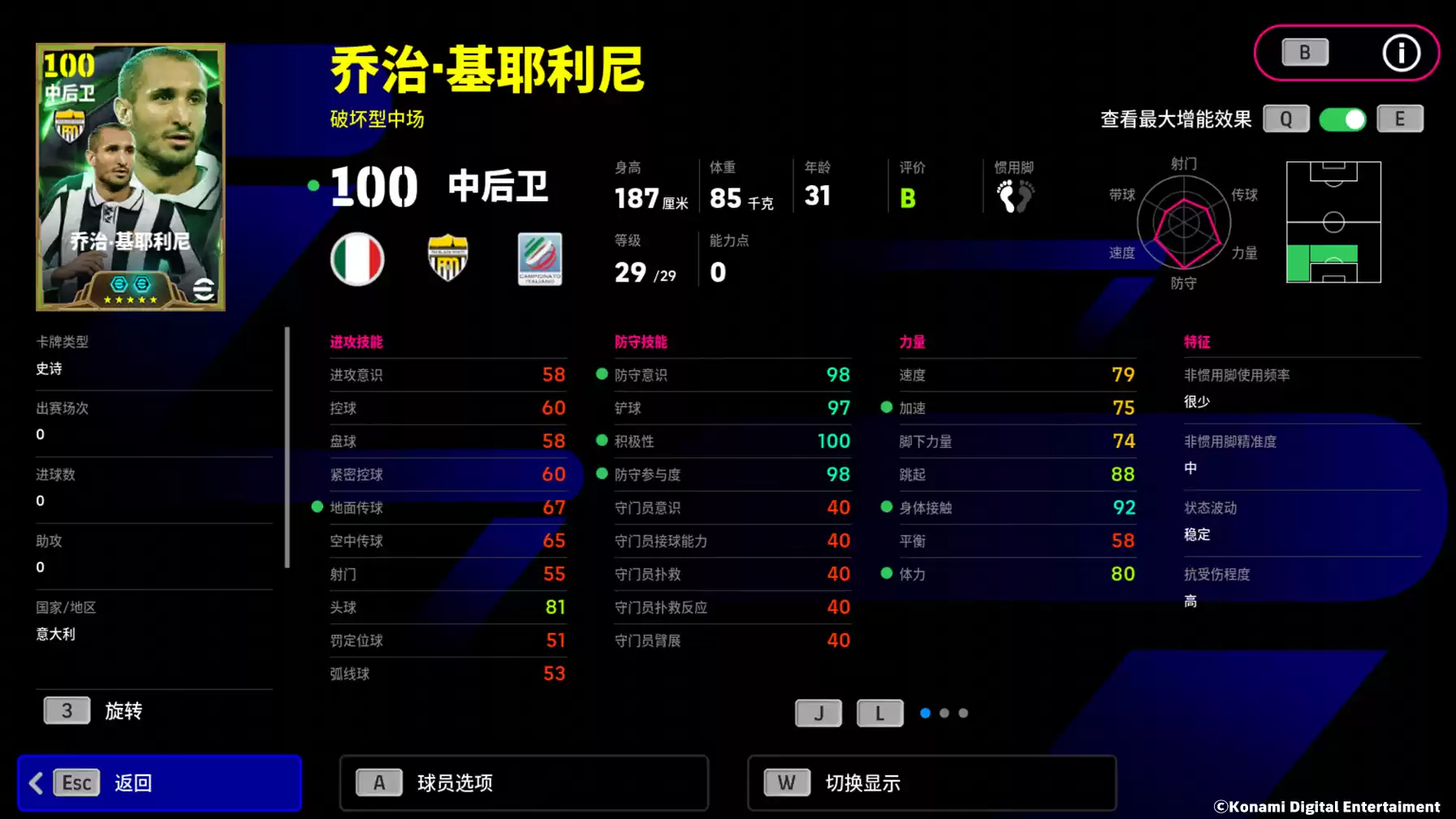 基耶利尼是亚平宁赛场上的铁血硬汉,更是斑马军团的后防领袖!凶狠无畏的飞身铲抢,洞悉杀机的阅读能力以及永不熄灭的顽强斗志,基耶利尼用血肉之躯为老妇人的防线筑起钢筋城墙!从随队降级的不离不弃,再到创下联赛九连冠的壮举,基耶利尼就是斑马军团的传奇!