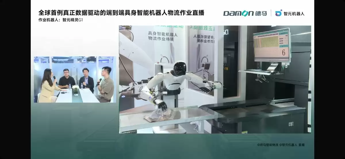 首例真正数据驱动的端到端具身智能机器人物流直播间