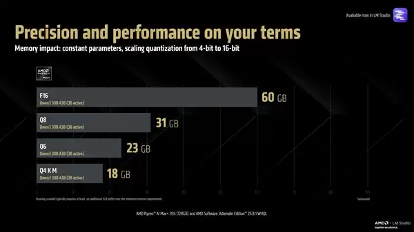 7月30日消息,AMD Zen5架构的锐龙AI Max+ 395,是第一个可以在本地运行700亿参数AI大模型的平台,当然需要搭配128GB统一内存,而现在,AMD奉上重磅升级,1280亿参数大模型都可以在本地运行了!