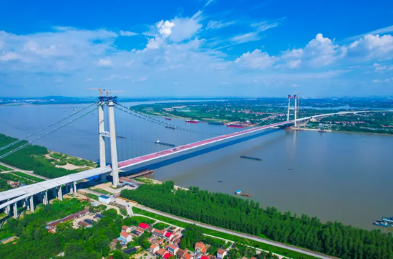 主跨1430米,桥梁全宽50.5米,可通行双向八车道公路,是长江上最宽的大桥。
