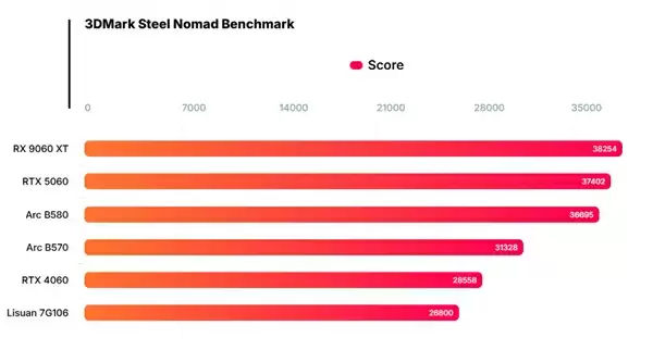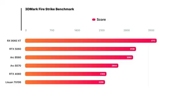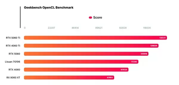 在性能方面,7G106再次进行了合成基准测试演示。除了Geekbench OpenCL外,还展示了3DMark Firestrike测试成绩:26800分,与RTX 4060表现相当。