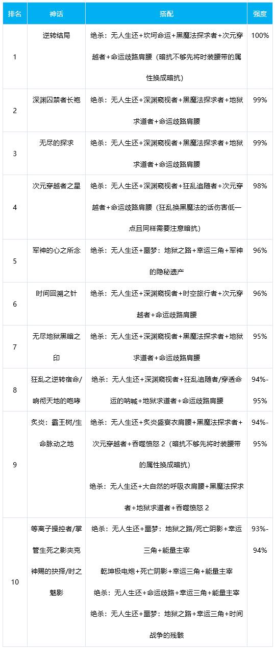 神话排名及搭配推荐