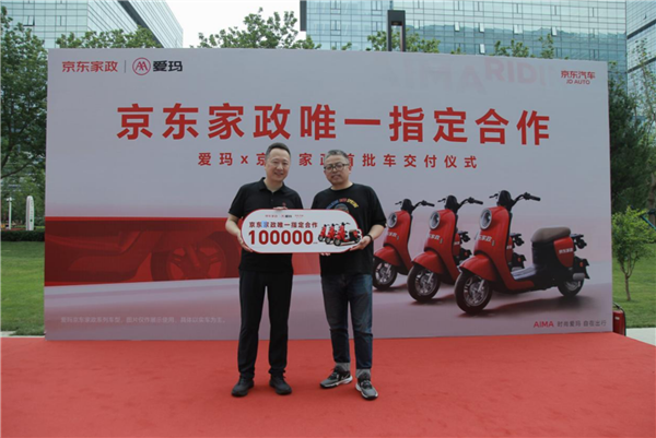 7月31日消息,京东与爱玛联合打造的定制款电动车首批交付仪式今天在北京举行,10位来自京东家政平台的阿姨成为首批车主。