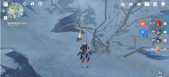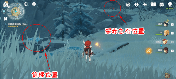 原神中龙脊雪山大勘测信标的位置是:根据小地图上的指引以及探索范围,四个信标会发出淡黄色光柱,图中,左下角的信标在雪堆下方,需要准备火元素攻击来融化雪堆,右上角这枚信标在古代坚冰下放,需要拾取深赤之石后融化坚冰。