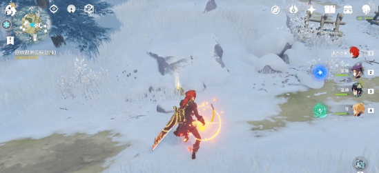 在一个雪堆下面,用元素视野看一下一目了然,用火元素攻击消融积雪回收信标