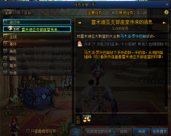 DNF黑鸦之境任务攻略上线后可以接到新的主线任务雷米迪亚支部座堂传来的消息,要求玩家找雷米迪亚大教堂的大主教马杰洛罗什巴赫谈谈,去大教堂找马杰洛对话可以完成任务并接到后续任务。