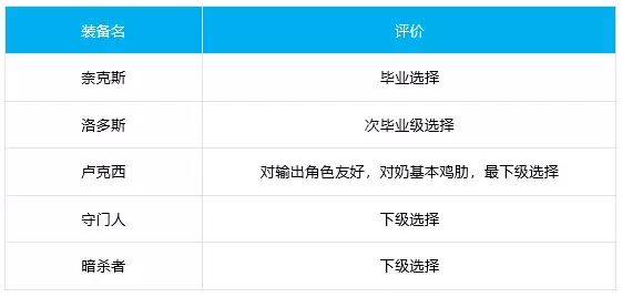 【补充说明】:不以毕业为要求的话有什么带什么,本表仅在此对BUFF装做出一定程度推荐,排名不代表强度,未出现装备不代表不能用。