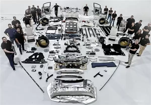 此外,从法拉第未来官方晒出的照片可以看到满地的汽车零部件,现场正在进行手工组装。