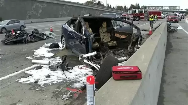 2018年3月,38岁的苹果华人工程师黄伟伦(Walter Huang)驾驶的2017款Model X,直接以时速百公里正面撞向了101高速的中间水泥隔离栏,电车电池爆燃起火,现场极为惨烈,黄在送往医院后不治身亡,留下妻子和两个孩子。