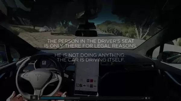 最具争议的一段宣传是2016年特斯拉官方发布视频选称其硬件平台支持全自动驾驶,称“驾驶员仅因法律原因坐在驾驶座上”。