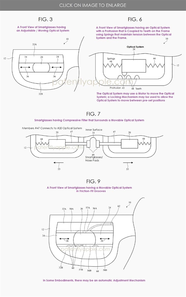8月4日消息,近日,苹果公开了一项关于未来智能眼镜的新专利,其核心是在眼镜镜框内集成 “高级可调节光学系统”,能根据用户需求动态调节焦距、度数及瞳距,无需用户验光配备处方镜片。