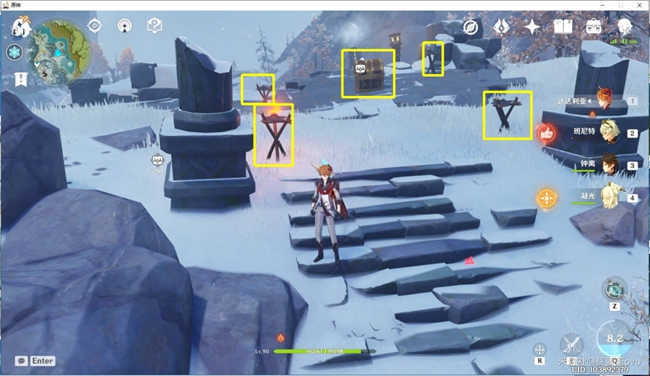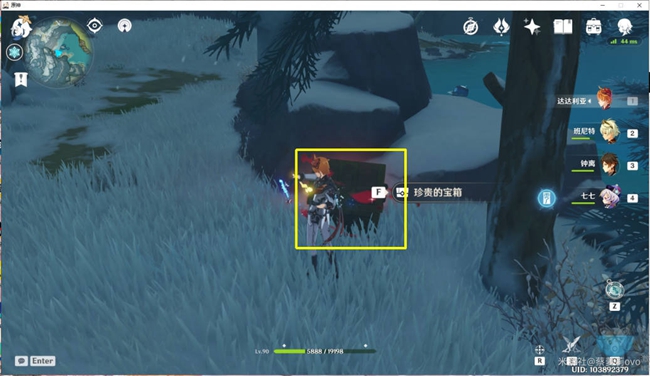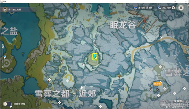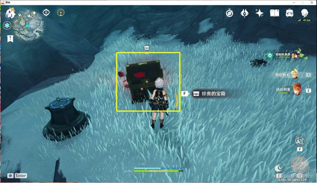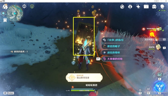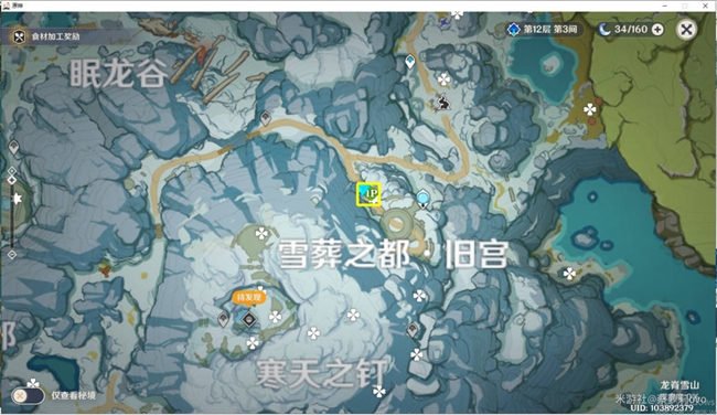 原神中龙脊雪山珍贵宝箱的位置是:四个火把子,点了,出个独眼小怪,锤掉出珍贵,锤丘丘人部落,锤完出珍贵,锤掉冰门,有密道,丘丘人部落,锤牛牛,雷冰大胖子,好几个大胖子,水雷大胖子,解谜,挑战。