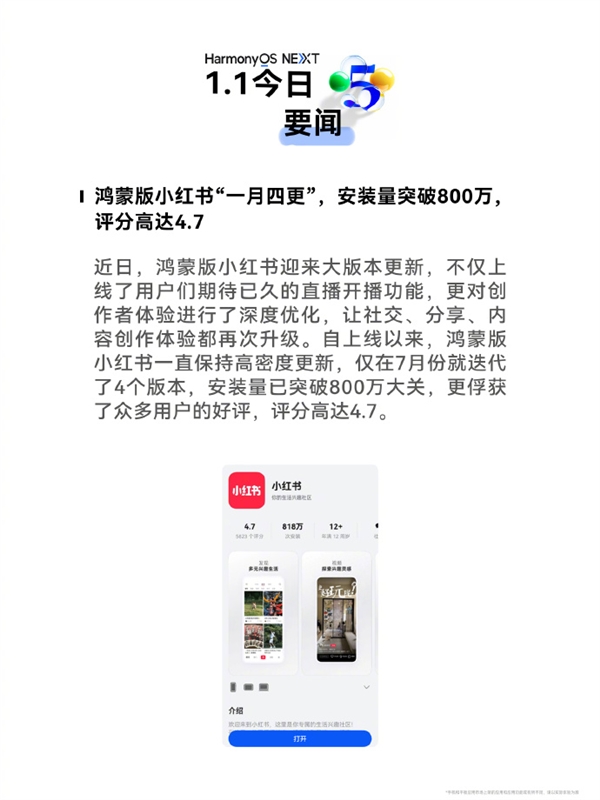鸿蒙版小红书“一月四更” 安装量突破800万