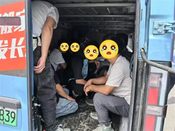 原来在不足几平米、没有任何安全设施的黑暗货箱内,竟然密密麻麻蹲坐着、蜷缩着整整9名成年乘客,随车还有他们携带的各种行李物品。