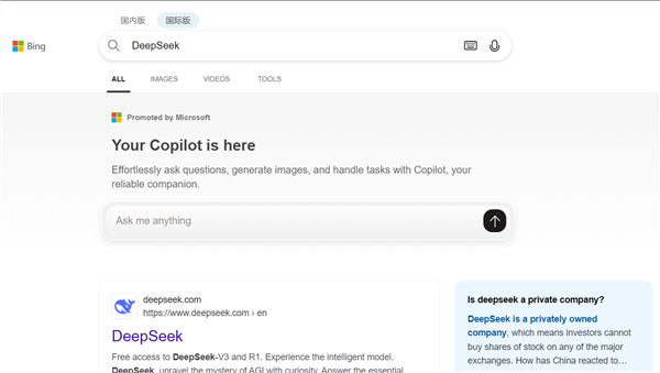 微软在Bing中夹带私货广告!搜索DeepSeek等会弹出Copilot伪装
