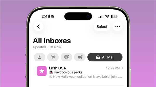 邮件应用中新增了专门的“选择”按钮,此前该按钮藏在“…”菜单中。