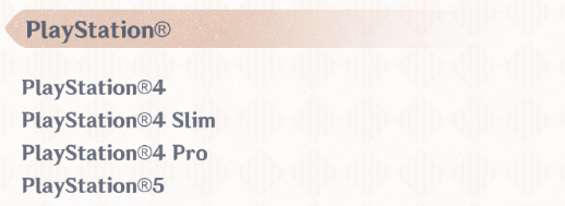 值得一提的是,本次配置需求公告中,直接把PlayStation中的PS4、PS4 Slim、PS4 Pro都给删除了(往期如下图),很多玩家纷纷猜测是否6.0新版本开始就不再支持PS4。