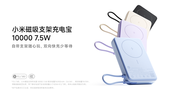 3C认证 可上飞机!小米磁吸支架充电宝10000 7.5W开启预约:169元