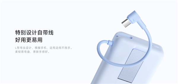 此外,充电宝配备了自带线设计,方便用户随时充电,无需额外携带充电线。