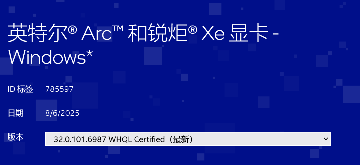8 月 7 日消息,英特尔本月 6 日正式发布了 32.0.101.6987 版本 WHQL 认证显卡驱动程序,为锐炫架构核显与独显添加对《战地风云 6》公开测试版、《四海兄弟:故乡》两款游戏的支持。