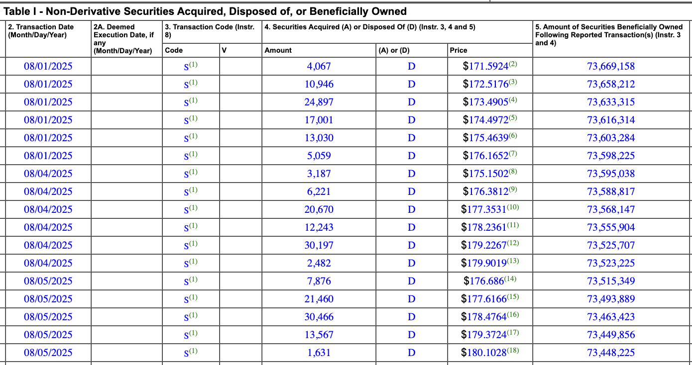 8 月 6 日消息,美国证券交易委员会(SEC)今日披露的最新文件显示,英伟达创始人兼 CEO 黄仁勋于 8 月 1 日-8 月 5 日期间累计出售约 22.5 万股公司普通股。