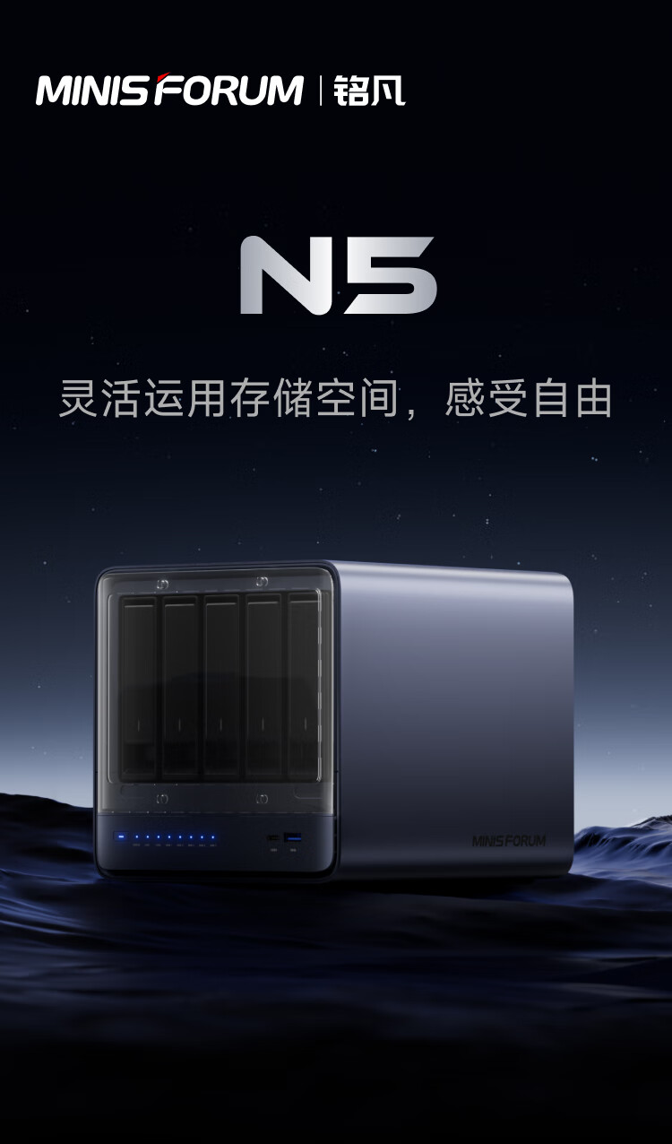 8 月 6 日消息,MINISFORUM 铭凡在 7 月初曾宣布推出 N5 系列混合 NAS 型迷你主机。目前该系列产品中基于 AMD 锐龙 7 255 八核 "Hawk Point" 处理器的标准版型号已经上市,16GB+128GB 配置售价 3749 元(注:可在此基础上享受国家补贴)。