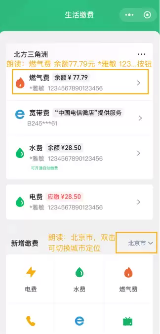 无论是 iOS 的旁白,还是安卓的 TalkBack,账单、缴费流程都有语音指引。微信支付官方表示,每次缴费的操作时间,比以前快了整整四分之一。